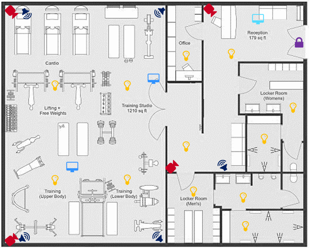 Türen , Lichter, Rollläden, Fitnessgeräte, etc. - die Steuerung des gesamten Studios ist durch den LiveCoach möglich.